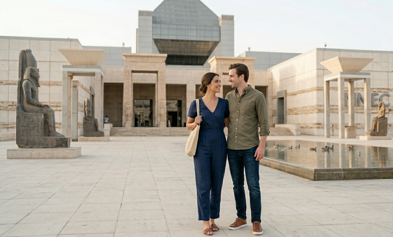 After breakfast, check out of your hotel and transfer to Luxor Airport for your flight to Cairo. On arrival, your private Egyptologist guide will be waiting to continue your honeymoon journey through the timeless treasures of Old Cairo. The Egyptian Museum (1901 AD) Begin at Cairo’s legendary showcase of ancient Egyptian art and architecture. Its grand halls hold masterpieces spanning 5,000+ years, each telling the story of one of the world’s most remarkable civilizations. Lunch: Enjoy a romantic meal together at a charming local restaurant in Cairo, then continue to: